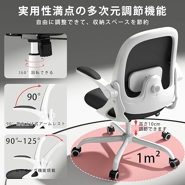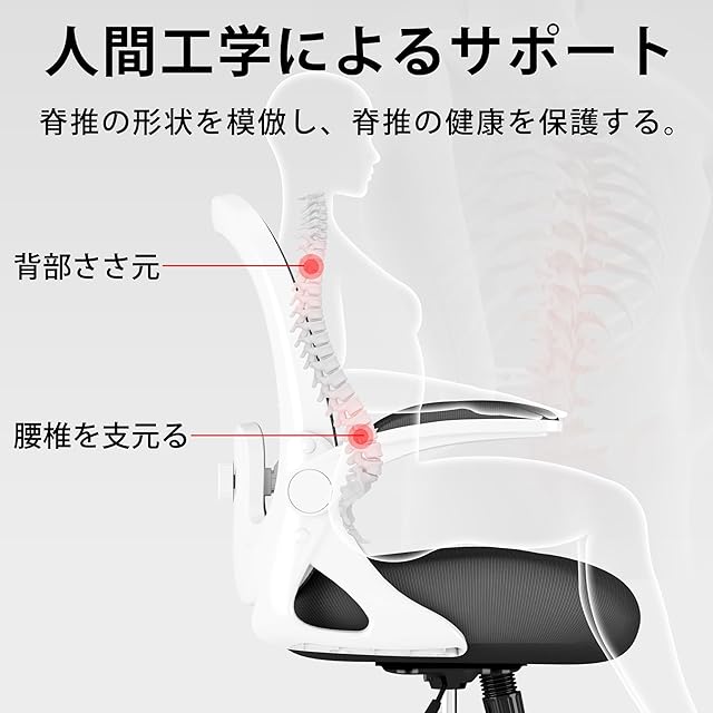 MOCHHOFU オフィスチェア デスクチェア メッシュ 跳ね上げ式アームレスト椅子 テレワークメッシュ パソコンチェア pcチェア 腰が痛くならない コンパクト 通気性強い 人間工学デザイン 腰痛対策 姿勢矯正 腰サポート背もたれ調節 在宅ワーク 自宅 プレゼント用 ブラックホワイト