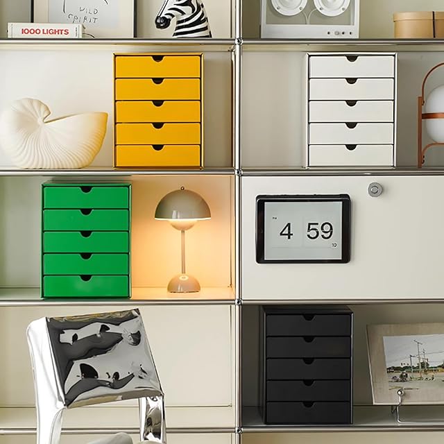 CAGUUU レターケース 書類ケース 書類整理 5段/10段 引き出し オフィス収納 A4対応 卓上収納 マグネット付き 北欧風 書斎用 おしゃれ テレワーク 事務用品 収納ボックス 収納家具 (イエロー, 5段タイプ)