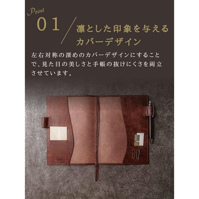 ✅【特徴】上質なイタリアンレザー1枚革から大胆に仕立てた本革手帳カバー。表には縫い目を入れず、革本来の美しさを感じていただけます。