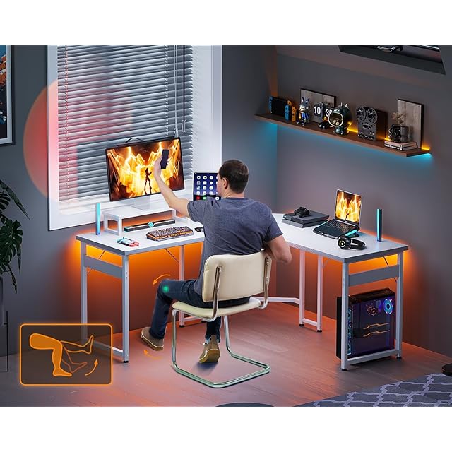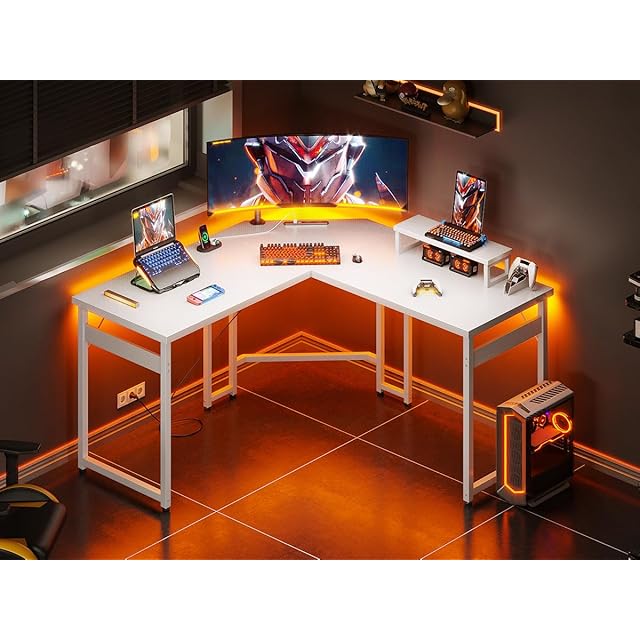 AODK l字デスク パソコンデスク L字型 ゲーミングデスク デスク 机 幅128*128 コンセント付き pcデスク モニター台付き オフィスデスク 組立簡単 勉強机 在宅勤務 学習机 カーボンホワイト
