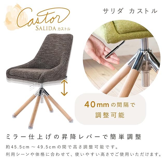 イトーキ サリダ カストル カカオ デスクチェア【一点もの・天然木製の脚 / 選べる5カラー / 360°回転 / 40mm座面上下昇降 / こだわりのミラー仕上げ/上質なファブリック/工具不要でかんたん組み立て/天然木製脚のPVCキャップ付属/イトーキ品質 / 3年】 オフィスチェア ダイニングチェア YWS-1A-BR