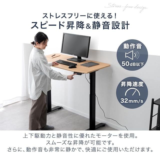 【スタッフのおすすめポイント】ボタン一つでお好みの高さに電動昇降デスク・好きな高さを4パターン登録可能 メモリ機能・ストレスフリー! 静音&スピード昇降・挟み込みを防ぐ 衝突防止センサー付き・頑丈!耐荷重120kg・複数国の基準を合格した安心設計<br>・お手入れ簡単! PVC天板・がたつき防止アジャスター付き