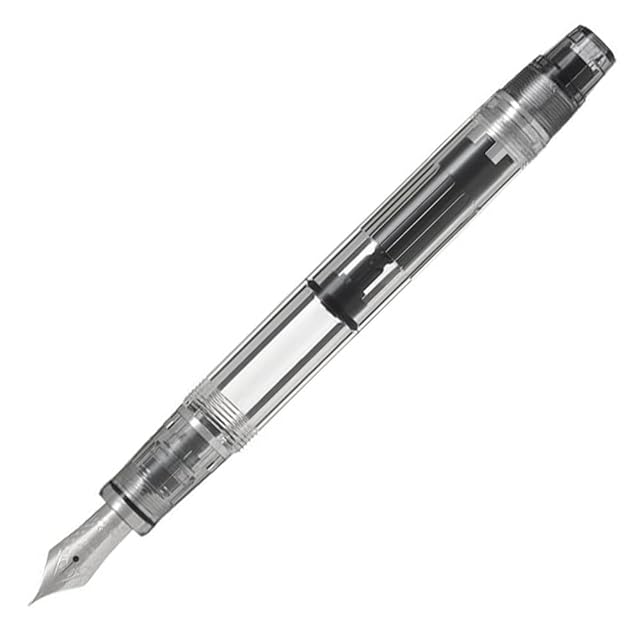 説明:回転吸入機構を採用した万年筆で、1.2mlとインキ容量も充実。ペン先には、14Kを採用。スケルトンタイプなので使うインクの色によって見る楽しみを与えてくれる一本です。