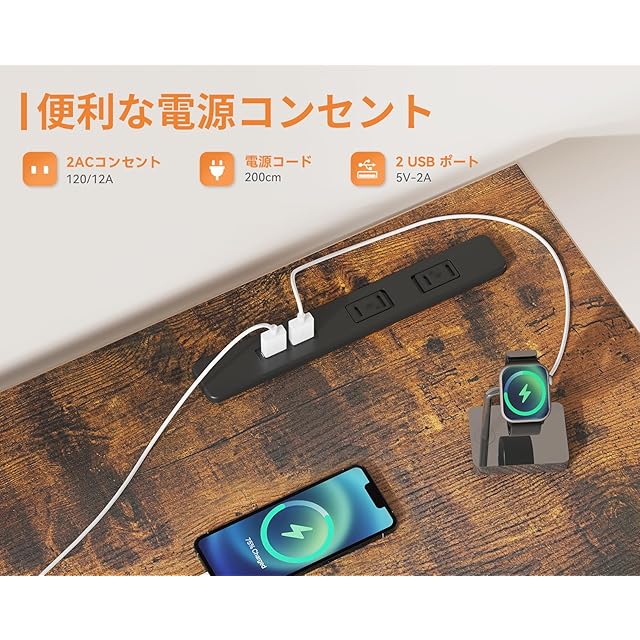 【コンセント付きデスク・ゲームと仕事両立】パソコンデスクとしてはもちろん、ゲーミングデスクとしても使用できるおしゃれなL字デスク。机には、2つのACコンセントとUSB ポート付きで、パソコンやスマホなどの充電ができて超便利です。また、ラックは間取りや利き手に合わせて左右付け替え可能。