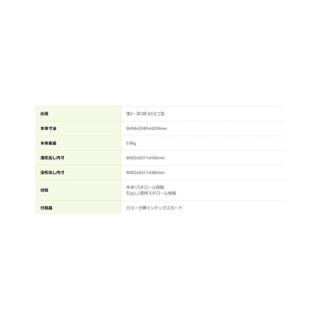 <b>仕様:</b> A3ヨコ/浅3・深1段・A3・ヨコ型