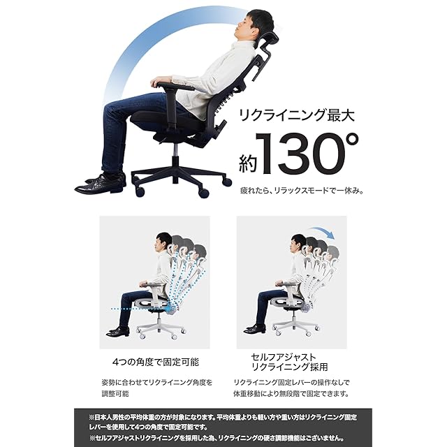 【蒸れにくく快適な座り心地】新ナイロン糸を使用した強度の高いプレミアムメッシュを採用、夏場でも蒸れない快適な座り心地。人間工学に基づいたS字形状の背もたれ、頭をベストポジションで支える2Dヘッドレストにより快適で疲れにくい姿勢を長時間キープ