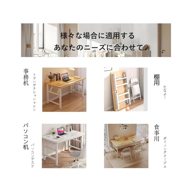 【インテリアに馴染むデザイン】:シンプルで洗練されたデザインの折り畳みデスク。家具の隙間にスリムに収納可能できるから使わない時も場所をとりません。PCデスク・勉強机・ゲーミングデスク・ミシン台・作業机・サイドテーブルなど多目的用途で使用できます。