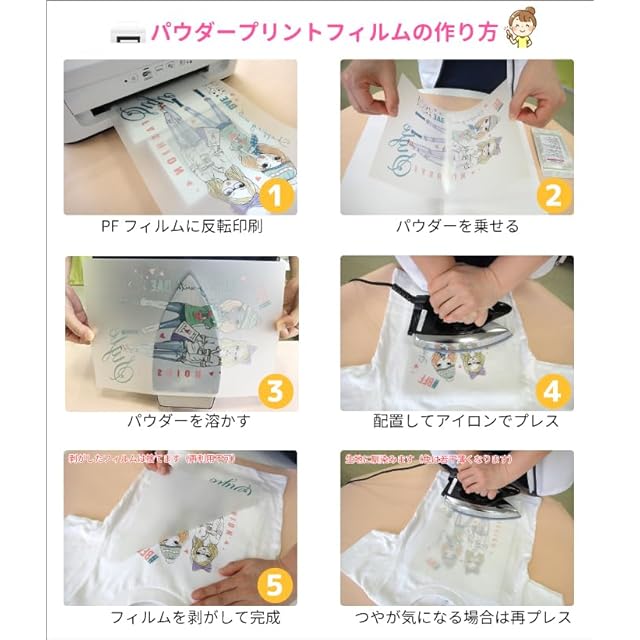 パウダープリントフィルムでは、印刷された絵や文字のインクの部分だけがプリントされるので、仕上がりがとても綺麗です
