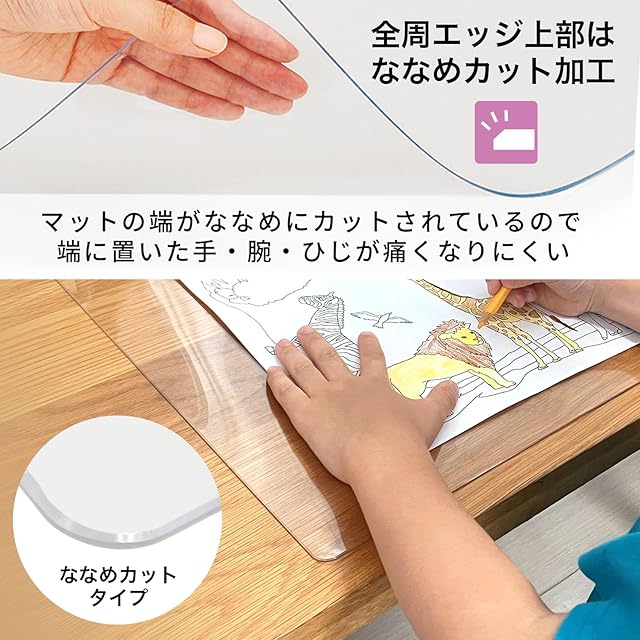 材質:マット=軟質ポリ塩化ビニル(PVC)1.6mm厚、裏面無移行処理、下敷=不織布(PET)0.7mm厚