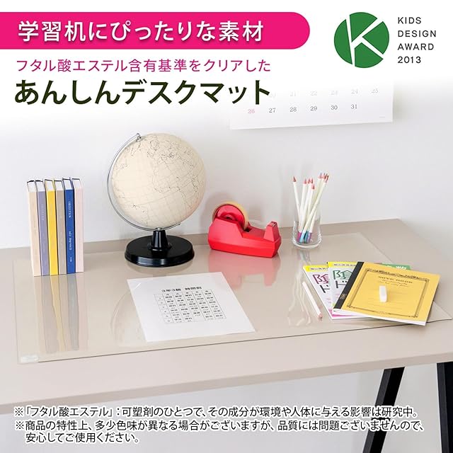 学習机にピッタリ!食品衛生法(おもちゃ)で規定されている特定フタル酸エステル類の含有基準をクリア!RoHS2制限10物質の含有基準もクリア!あんしん素材のデスクマット