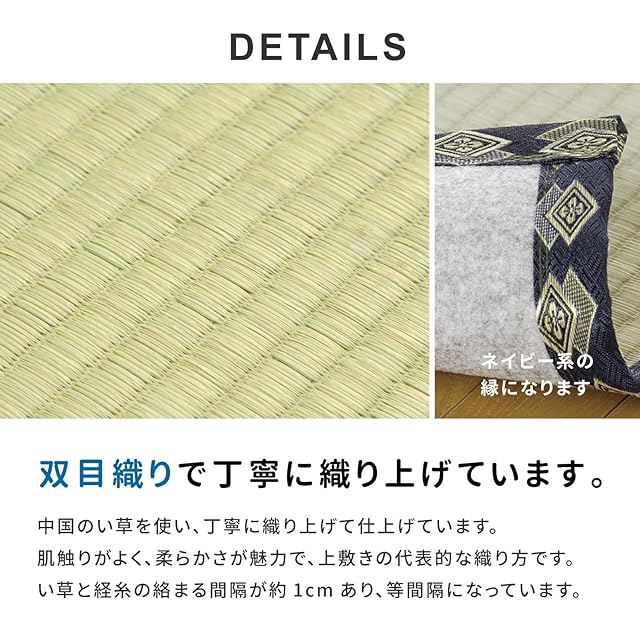 表:い草100% ヘリ:ポリプロピレン 裏面:ポリエステル不織布(すべりにくい加工)