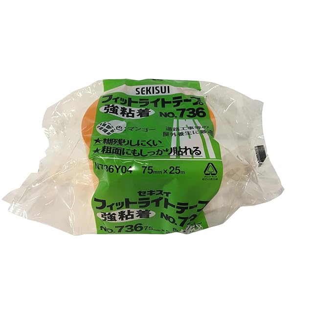 【箱売り】積水化学工業 SEKISUI 養生用 フィットライトテープ #736 強粘着 マンゴー 75mm×25m 24巻入り