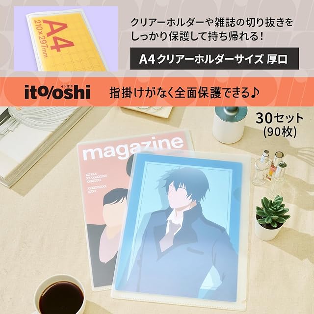 推しのクリアホルダーや雑誌の切り抜きが入る、大きめのクリアホルダー。B4ミニサイズまでのグッズを傷や汚れから守ります。