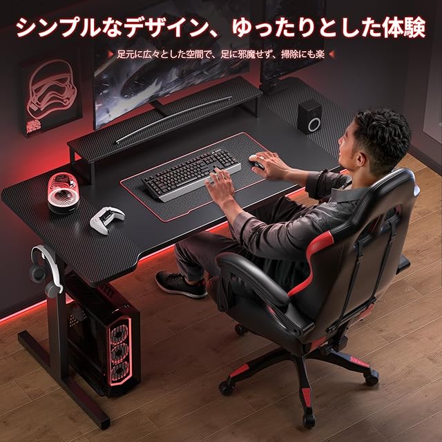 ✅【シンプルで安定】広々とした天板とシンプルな「工」字デザインで、足元も手元もゆったり快適に使えます。天板の下には「日」字型の炭素鋼を採用し、三角構造で支えることにより、サポート力が大幅に向上しました。がたつきもなく、モニターやデスクトップを置いても安心して使用できるゲーミングデスクです。