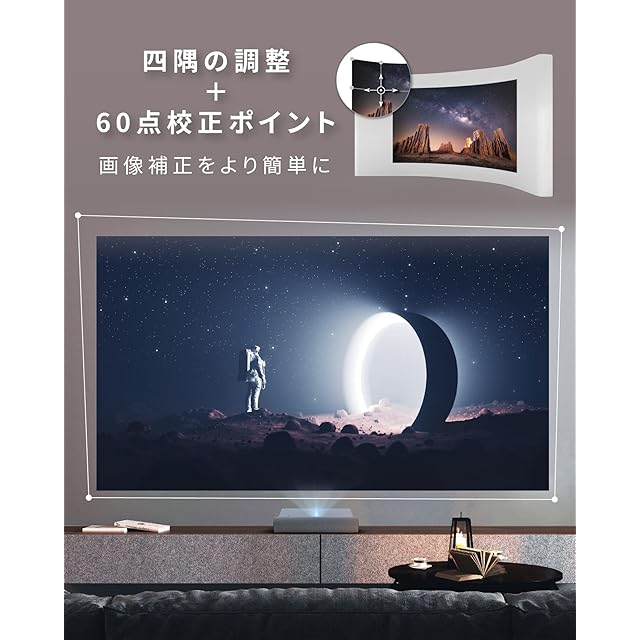 ViewSonic X2000L-4K 超短焦点 レーザープロジェクター【4K / 2000 ANSI ルーメン/HDR HLG/DTS Dolby対応 Harman Kardonデュアルスピーカー /4隅の調整 /60点校正ポイント /150型大画面 / Wi-Fi Bluetooth/家庭用】ホワイト