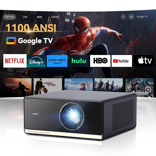 【1100ANSI・Google TV搭載】 Wanbo X5 Pro プロジェクター 超明るい 4K対応 フルHD 1.25:1投影比率 26dB静音 10000+アプリ 音声制御 天井 小型 5G WiFi瞬時ブルートゥース chromecast 対応 10W HiFi スピーカー内蔵 オートフォーカス/自動台形補正/スクリーンアジャスト/障害物自動回避 ARC ホームプロジェクター