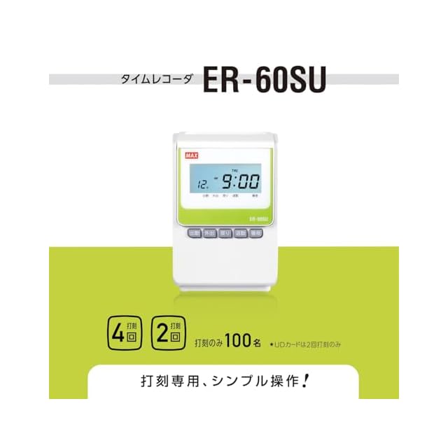 打刻専用、使いやすさを優先したシンプル操作!1日最大4回印字(Sカード使用)、2回印字(UDカード使用)