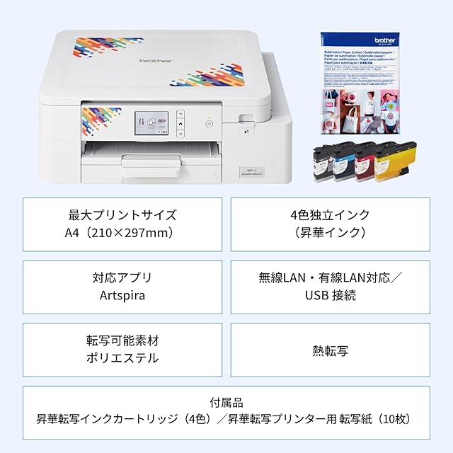 ブラザー 昇華転写プリンター SP-1(スターターインクカートリッジ/昇華転写紙10枚入り/転写可能素材:ポリエステル/オリジナルグッズ作成)