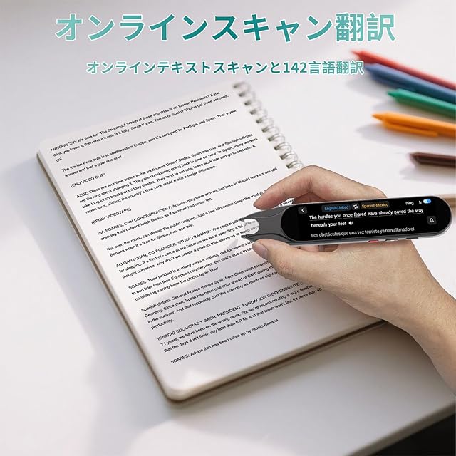 【即時双方向言語翻訳】翻訳ペンは双方向言語翻訳を通じて、ビジネス会議、面接、ソーシャルインタラクションの中でも、ペン型翻訳機は多言語のスムーズでリアルタイムなコミュニケーションを実現することができます。言語学習者や旅行者の必須ツールとなるように、さまざまな国から来た人とシームレスに会話するのを支援します。この多機能翻訳ペンは、言語の壁を越えた効果的なコミュニケーションを確保します。
