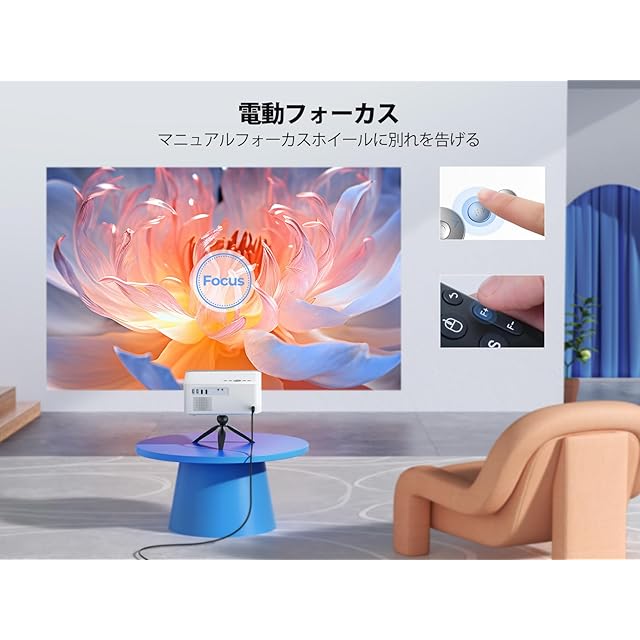 【瞬時電動フォーカス·自動台形補正·50%ズーム機能搭載】ミニプロジェクター X6には、電動フォーカス機能が付属しており、リモコンまたは本体の「F+」と「F-」キーを使用するだけで簡単にフォーカスを合わせることができます。さらに、プロジェクター天井吊り可X6には垂直台形補正機能も搭載されており、いつでも上部と下部の角度を調整して画面を最適な状態にすることができます。これにより、より良い視聴体験を得ることができます。モバイルプロジェクターはズーム機能も搭載しています。これにより、投影画像のサイズを調整することができます。適切な距離に設置せずとも、映像の大きさを自由に変えることができます。