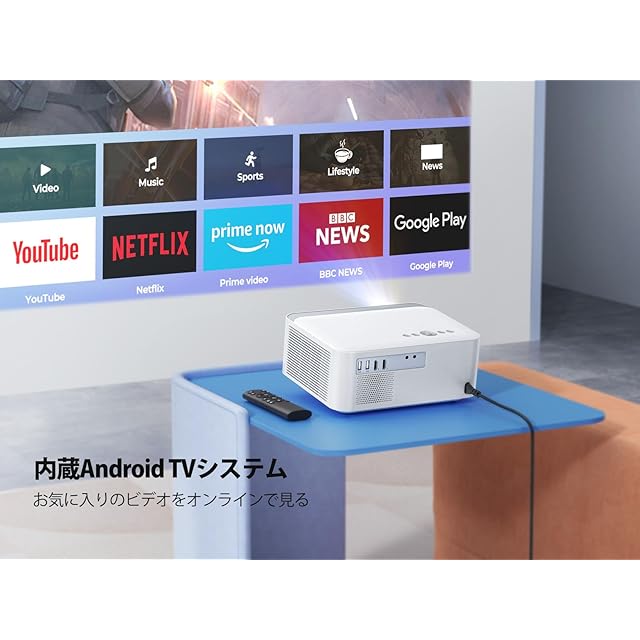 【AndroidTV搭載·超高速WIFI6】Android TV プロジェクターは、Android TVを搭載して、これにより、映画、ドラマ、音楽などの様々なコンテンツに簡単にアクセスすることができます。さらに、YouTubeやPrime Video、Netflix、Hulu、TVer、Abema TV、DAZNなどの7,000以上のアフリを通じて無限のエンターテインメントを楽しむことができます。自宅でホームプロジェクターを快適なエンターテイメントをお楽しみください。高速なWi-Fi6で、インターネットへの接続がスムーズで高速に行えます。ストリーミングサービスやオンラインゲームを快適に楽しむことができます。また、スマートフォンやタブレットとの接続も簡単に行えます。