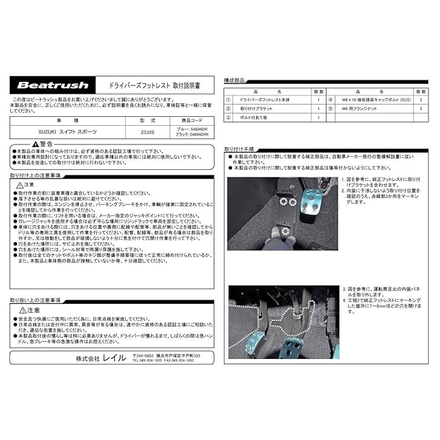 Beatrush(ビートラッシュ)ドライバーフットレスト SWIFT SPORT [ ZC33S ]適合 【S48046DR#】 (シルバー)