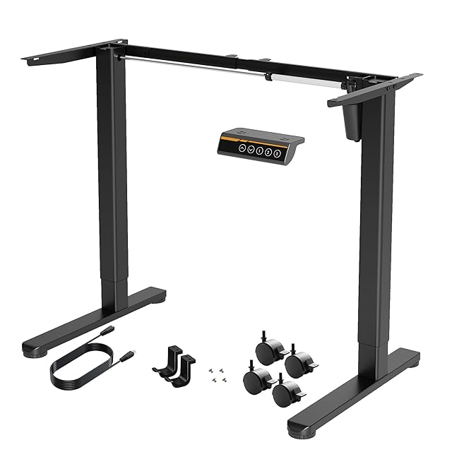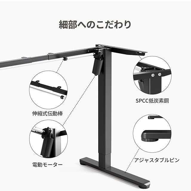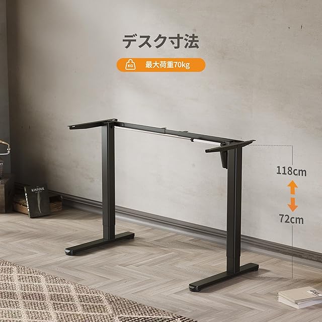 Claiks 昇降デスク 脚のみ フレーム C字型 100-160cm天板対応 耐荷重70kg 高さメモリー機能 キャスター付き 高さ調整 72-118cm 黒 ブラック