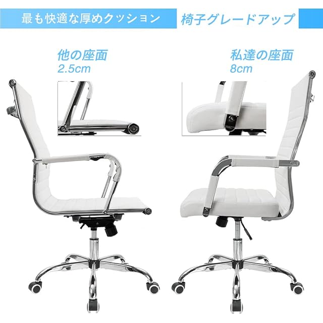 [高品質にこだわり]上質なPU革、耐摩耗性が強い、長い時間使用しても色あせない、水や汚れに強く、お手入れも簡単!上質な固形スポンジ、柔軟性と弾力に満ちた極厚座面、椅子に沈むような感覚をもたらします、長時間の作業も快適に行えます。無声キャスター、10万回のローリングテストを経て品質はされています。