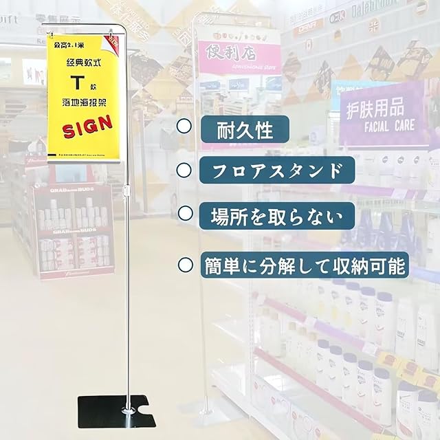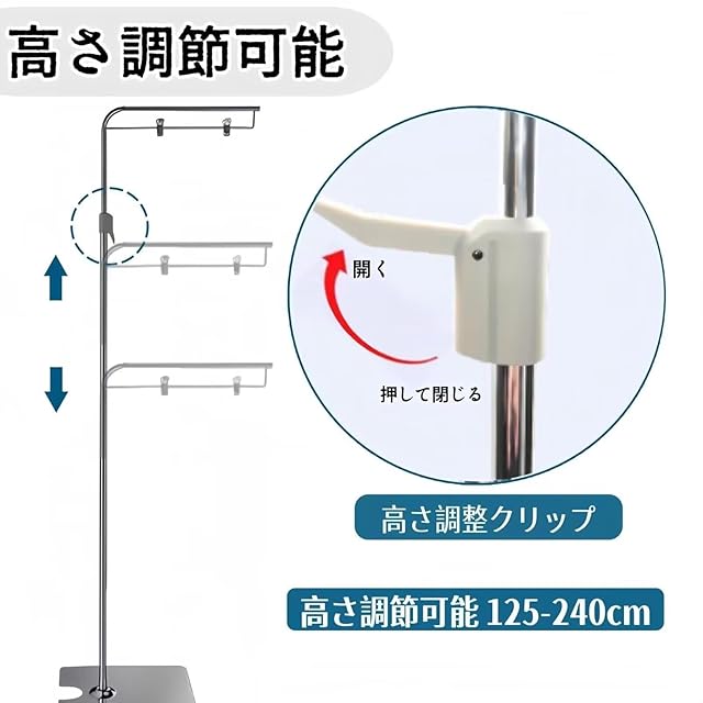 ✅【高さ調整可能】店舗、売場販促の必需品、フロアPOPスタンド。高さは125-240cmまで伸縮調整可能です。広告スタンドのクロスバーには独立したクリップが装備されており、クリップの間隔も変えられます。クリップはポスターの大きさに合わせ左右にスライドして調整可能です。