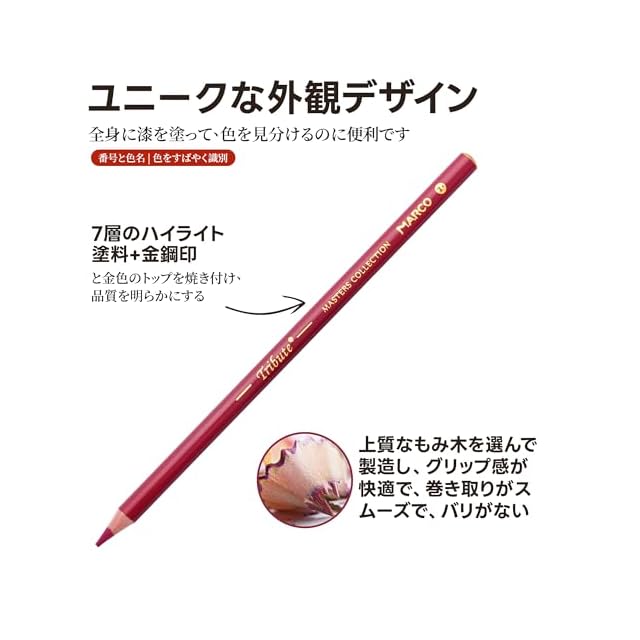 【7.5 mmの筆記具を太くし、円軸の設計】このMarco 3300大師シリーズ色鉛筆セットは良質なシダ木/ピノキで作られ、握り心地が良く、巻き取りがスムーズで、バリがない。鉛筆削り付き。