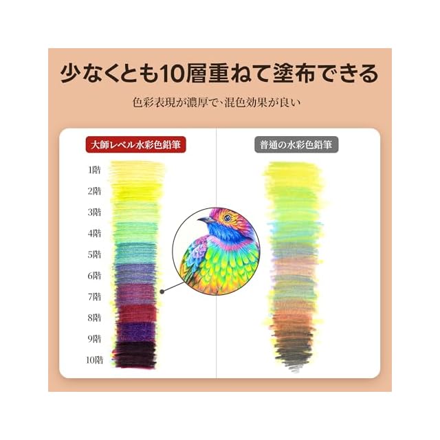 【色彩表現が濃く、混色効果が良い】この色鉛筆セットは、3300大師シリーズの色鉛筆で、色彩が濃く、色が塗りやすく、混色効果が良く、少なくとも10層以上重ね塗りすることができ、しかも滑りにくく、あなたの作品を紙の上に躍り出させ、まるで魔法のような魅力を持っています。