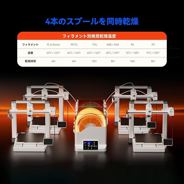 Chitu Systems フィラメントドライヤー E1 ドライボックス フィラメント密閉収納ボックス 40℃~70℃ 温度調節可能 360°均一加熱 3Dプリンター スプールホルダー PTCヒーター付き フィラメント乾燥機 タッチスクリーン付き ワンキーセット PLA PETG TPU ABS 1.75mm対応 4パックフィラメント用