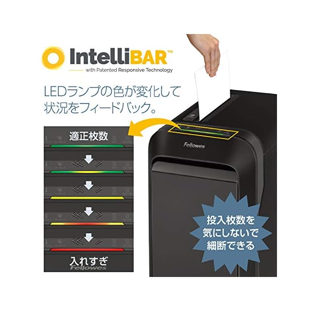 これがフェローズの次世代シュレッダー。紙詰まりや急なオーバーヒートによるイライラから解放されます。LEDインジケーターが、色変化によって快適なシュレッダー作業をサポートします。