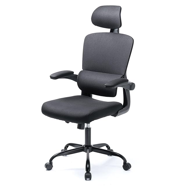サンワダイレクト オフィスチェア メッシュ 肘掛け跳ね上げ式 ランバーサポート ヘッドレスト高さ/角度調節対応 ロッキング機能 ミドルバック デスクチェア ブラック 150-SNCM43