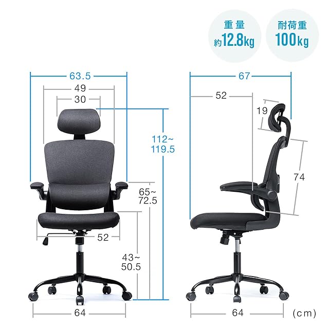 上下 と 角度調節 が出来る ヘッドレスト を標準で搭載しています。 耐荷重100kg の 高耐荷重 設計です。