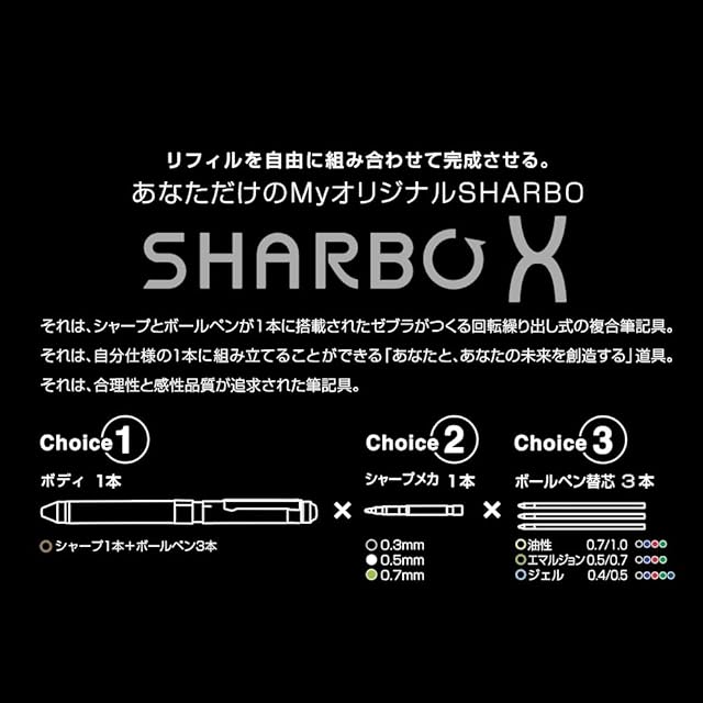 【リフィル付】4C-0.7芯(黒・赤・青) SBXシャープ部機構0.5mm