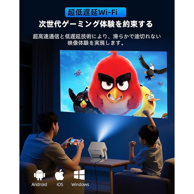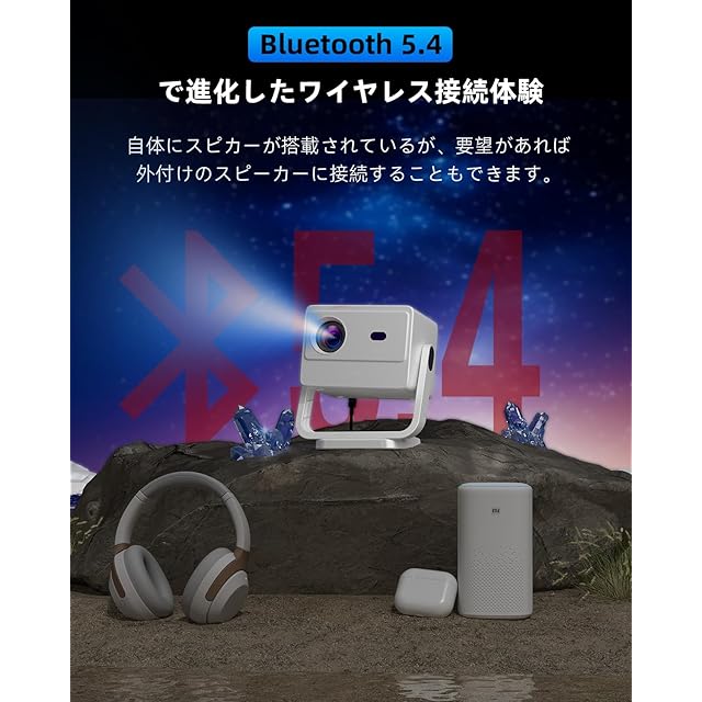 【Wi-Fi &Bluetooth 5.4で次世代接続】当プロジェクターは最新Wi-Fi 規格を採用し、驚異的な通信速度と「遅延ゼロ」に近いレスポンスを実現。特に対戦ゲームにおいて、他機種では実現できない圧倒的なアドバンテージを提供します。ラグに悩まされることなく、真の実力で勝負できる理想のプレイ環境を提供します。最新Bluetooth 5.4テクノロジーを搭載した当プロジェクターは、従来より2倍の高速伝送と驚異的な接続安定性を実現します。お手持ちのBluetoothイヤホンやスピーカーを瞬時に接続でき、迫力ある映像をこだわりの音響環境で映画館のような雰囲気を楽しむことができます。さらに、ワイヤレスイヤホンやスピーカーとの接続時、音声遅延を最小限に抑え、映像と音声のずれを解消しました。特に映画鑑賞やゲームプレイ時に、これまでにないシンクロ体験をお約束します。