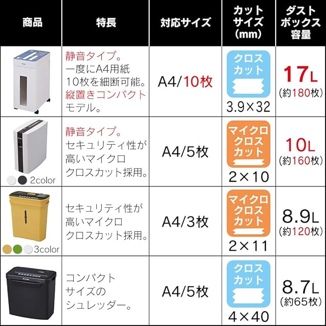 【細密カットで秘密を守る】カットサイズ約2×10mmの細密カットで、個人情報保護に役立つ。 ダイレクトメールやハガキなどの細断にピッタリ。