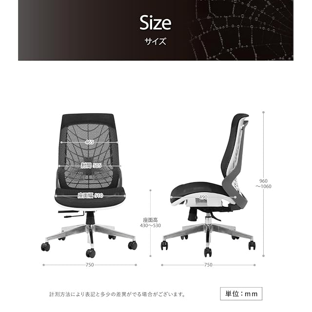 本体サイズ:幅750×奥行750×高さ960〜1060(座面高430〜530)mm