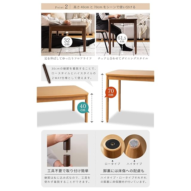 パレットライフ こたつ テーブル 78×58cm 長方形 おしゃれ 北欧 木製 木目調 ダイニング デスク ハイタイプ ロータイプ 継脚 小さめ コンパクト 一人暮らし シンプル モダン 韓国インテリア ナチュラル