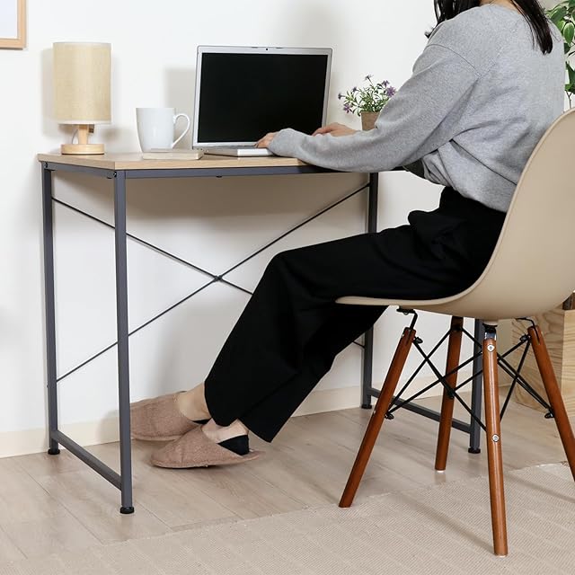 不二貿易 ワークデスク パソコンデスク 幅95×奥行48×高さ72cm ナチュラル コンパクト がたつき防止 シンプル ルカ 73609