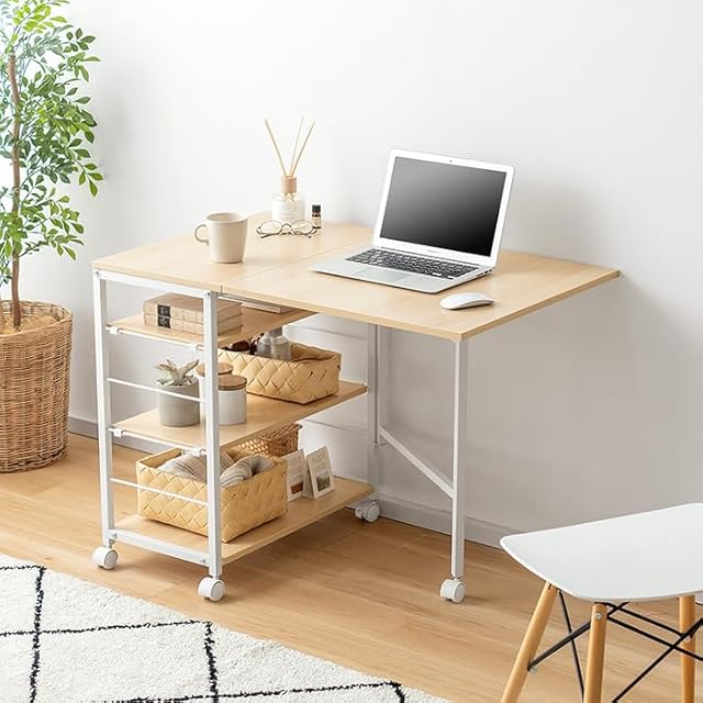 エア・リゾーム デスク 机 パソコンデスク おしゃれ 折りたたみ バタフライ ラック付き 棚 リビング 収納 バタフライデスク Olivia(オリビア) ナチュラル×ホワイト