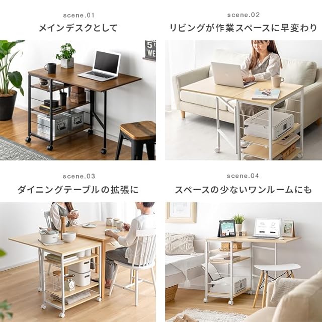 【天板拡張時サイズ】約幅95.5×奥行き60×高さ70cm(キャスター含む/約幅98×奥行き61.5cm) 【拡張時天板サイズ】約幅95.5×奥行き60cm