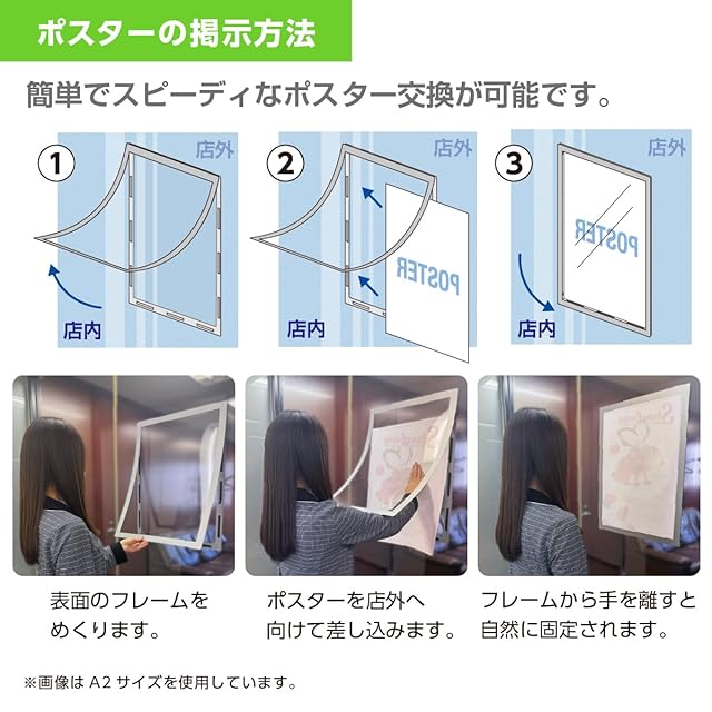 薄く軽いポスターフレーム 開け閉めもマグネットで簡単 両面掲示可能