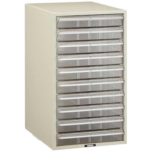 <b>材質:</b> 本体/スチール、引出し/透明スチロール樹脂
