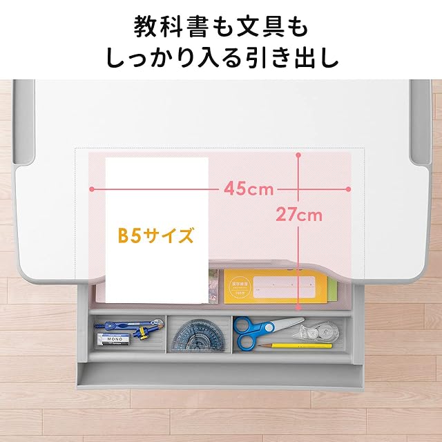 サンワダイレクト 学習机 椅子 セット 高さ調整 小学生 幅66.4×奥行47.4cm 引き出し付き 天板角度調整 100-DESKN016W