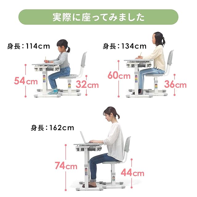 デスクとイスの高さ変更は、上部に上げるだけで簡単に調整可能です。