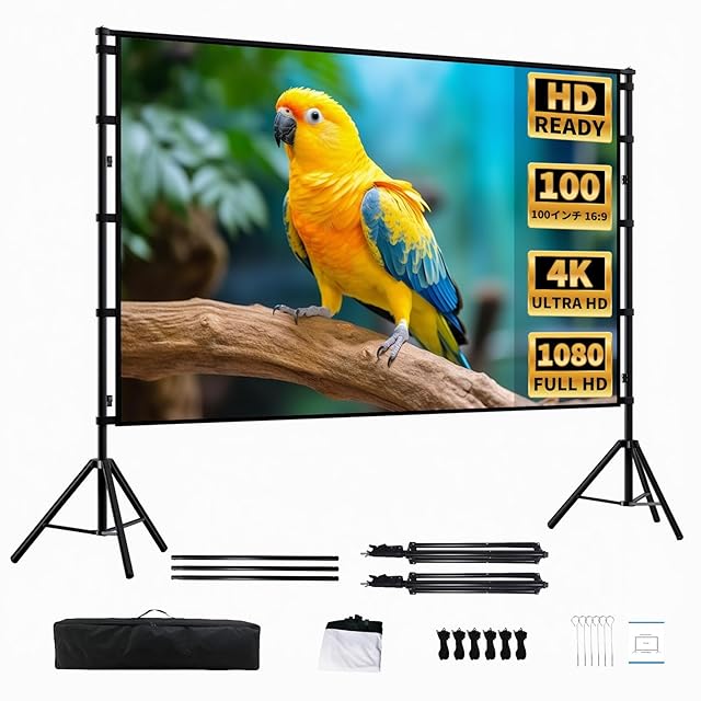 <p><strong>なぜ当社の4Kプロジェクションスクリーンを選ぶのか?</strong></p> <p> </p> <p> </p> <p>4K HD解像度で色鮮やかで繊細な映像を再現、映画の臨場感やゲームの細部までしっかり伝わる劇場体験を自宅で実現します。屋内外問わず、簡単にセットアップ可能な多機能スクリーンです。</p> <p> </p> <p> </p> <p> </p> <p><strong>主な特徴:</strong></p> <p> </p> <p> </p> <p> </p> <p> </p> <ul> <ul> <li><strong>4K高画質投影</strong> - 色鮮やかで繊細な映像再現で劇場のような体験を提供</li> </ul> </ul> <p> </p> <p> </p> <ul> <ul> <li><strong>高耐久素材</strong> - 厚手で光透過率の低い投影布と頑丈な三脚スタンド</li> </ul> </ul> <p> </p> <p> </p> <ul> <ul> <li><strong>マルチユース設計</strong> - エンタメ・ビジネス・教育など幅広い用途に対応</li> </ul> </ul> <p> </p> <p> </p> <ul> <ul> <li><strong>簡単調整可能</strong> - 工具不要の伸縮・角度調整可能な三脚スタンド</li> </ul> </ul> <p> </p> <p> </p> <ul> <ul> <li><strong>コンパクト収納</strong> - 専用キャリングバッグ付きで持ち運び楽々</li> </ul> </ul> <p> </p> <p> </p> <p> </p> <p> </p> <p> </p> <p><strong>なぜ必要か:</strong></p> <p> </p> <p> </p> <p> </p> <p> </p> <ul> <ul> <li>折りたたみ可能で収納スペースを取らない設計</li> </ul> </ul> <p> </p> <p> </p> <ul> <ul> <li>付属ペグ&ロープで屋外使用時の強風対策を強化</li> </ul> </ul> <p> </p> <p> </p> <ul> <ul> <li>自宅上映からキャンプ、プレゼンまで多様なシーンで活躍</li> </ul> </ul> <p> </p> <p> </p> <ul> <ul> <li>軽量設計で旅行先や友人宅への持ち運びに最適</li> </ul> </ul> <p> </p> <p> </p> <ul> <ul> <li>特別な機器不要ですぐに大画面体験を開始可能</li> </ul> </ul> <p> </p> <p> </p> <p> </p> <p> </p> <p> </p> <p>このプロジェクションスクリーンは、映画鑑賞からビジネスプレゼンテーション、キャンプでの野外上映まで、あらゆる大画面表示ニーズに対応します。簡単なセットアップとコンパクト収納性で、いつでもどこでも高品質な映像体験を手軽に楽しめます。</p>