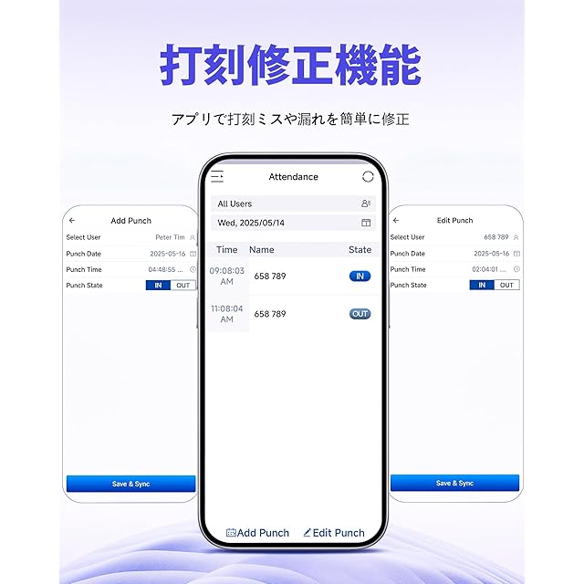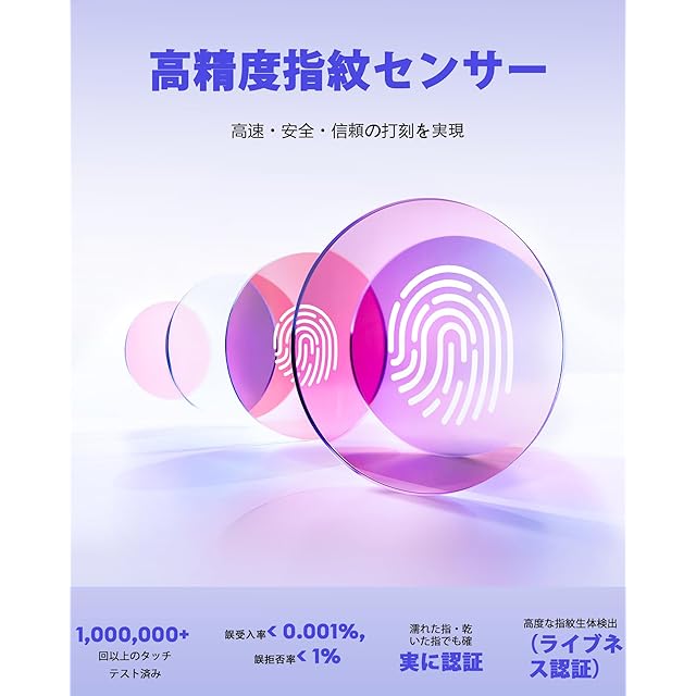 【4種類の認証モード対応でセキュリティ強化】 NGTeco MB2は、顔認証、指紋認証、RFIDカード、パスワードの4種類の認証方法に対応しています。従業員ごとの認証が可能で、不正打刻を防止し、正確な勤怠管理をサポートします。