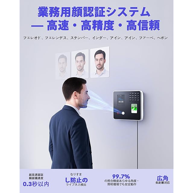 商品名:NGTeco 多機能タイムレコーダー 顔認証 指紋認証 RFID パスワード対応 Wi-Fi接続 1秒以内の高速認証 USBデータ管理 小規模・中規模ビジネス向け MB2